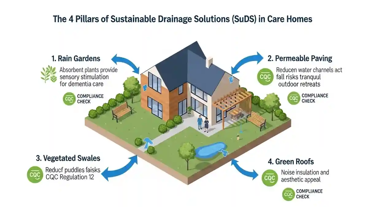 The future of sustainable drainage solutions CQC care home design is the integration of SuDS (Sustainable Drainage Systems). In Twickenham, Policy EN18 of the Local Plan encourages SuDS to manage surface water runoff, which often plagues the surrounding area.